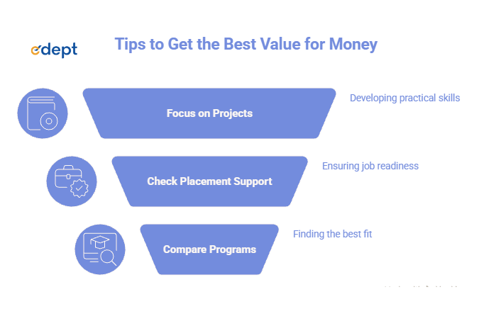 The short-term courses usually cost less, but they are less effective. They do not provide detailed and in-depth information. Sometimes, a 3-month bootcamp with daily live interactions and industry projects can provide better job opportunities than a self-paced program of 12 months with no practical exposure and mentorship. When you want to evaluate the cost based on duration, you should focus on how much active learning and exposure in the practical field you are getting, not just the days of the course.