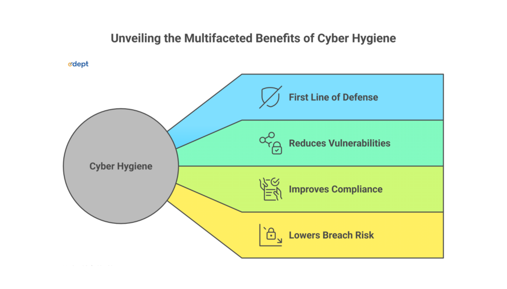 Maintaining proper cyber hygiene reduces vulnerabilities across networks, devices, and cloud platforms, making it harder for attackers to exploit security gaps. For remote workers and students, good cyber hygiene improves compliance with data protection regulations and lowers the risk of costly breaches. In today’s digital world, practicing cyber hygiene is not an option but a necessity.