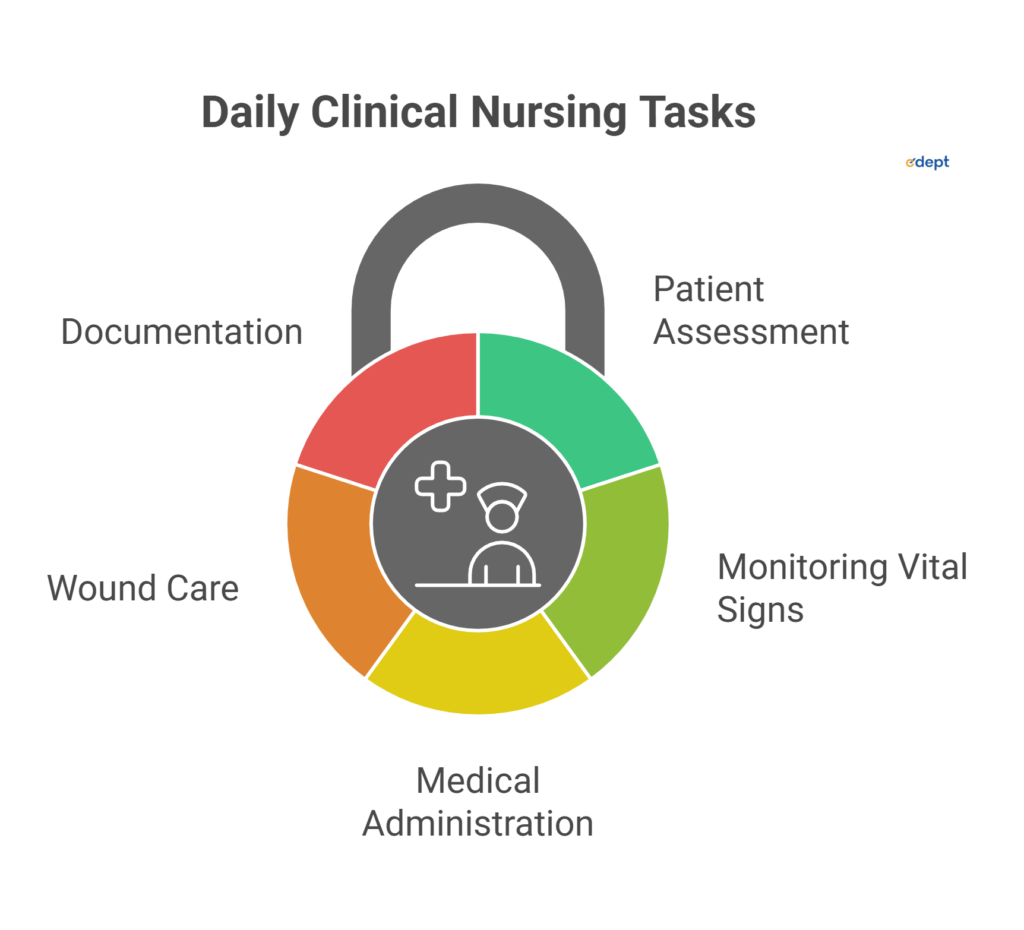 Clinical nursing’s daily duty revolves around a wide range of responsibilities that support patient health and recovery.